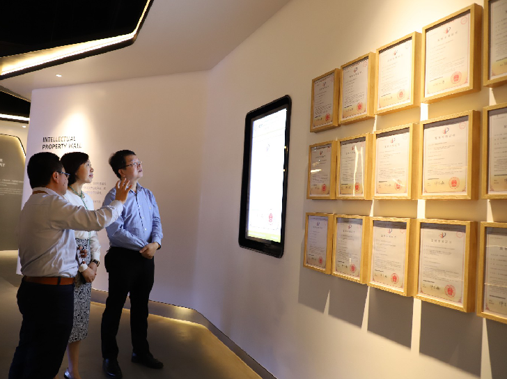 聽取了乾照光電知識產(chǎn)權(quán)工作情況介紹后,盧局長對乾照光電成立知識產(chǎn)權(quán)戰(zhàn)略部的做法表示贊賞,并祝賀乾照光電獲得國家級知識產(chǎn)權(quán)示范企業(yè)榮譽。盧局長在知識產(chǎn)權(quán)榮譽墻前駐足許久,勉勵乾照光電要加強技術(shù)創(chuàng)新,打造企業(yè)專利、商標(biāo)、著作權(quán)的知識產(chǎn)權(quán)綜合實力。
