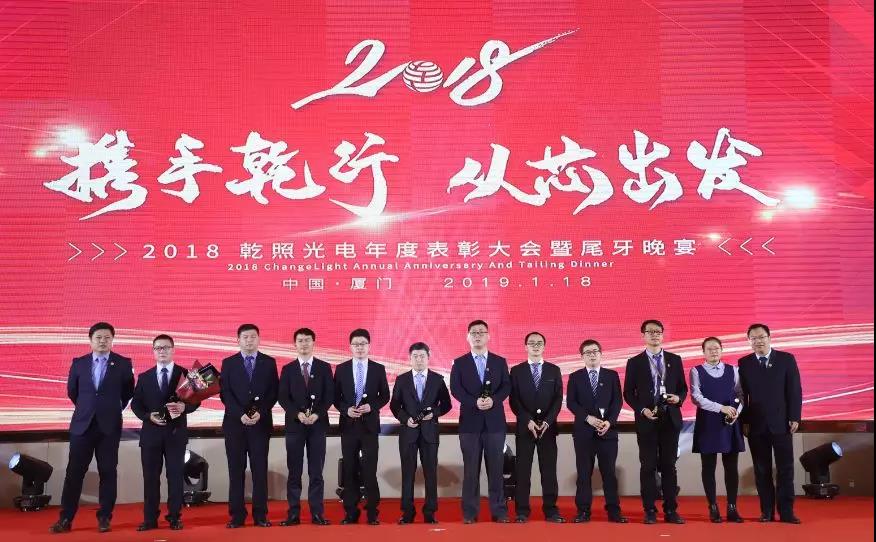 2019年1月18日,乾照光電舉行了“攜手乾行,從芯出發”2018年度總結表彰暨尾牙晚宴。乾照光電董事長金章育,總裁蔡海防,公司全體高管以及廈門總部員工共800余人參加。同時,公司還邀請了董事及股東代表梁川、郎永清、申曉軍、徐德金、楊寶華、易陽春、陳諾夫、張秀蘭、劉曉軍,乾照光電創始人、原董事長鄧電明等嘉賓出席。