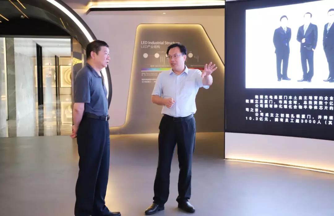 7月4日,廈門市科技局局長孔曙光一行蒞臨乾照光電調研指導。市科技局綜合處處長黃穎、科技合作與成果轉化處處長吳志偉、高新處處長陳君玉陪同調研。乾照光電總裁蔡海防,未來顯示研究院院長柯志杰等公司領導陪同接待。