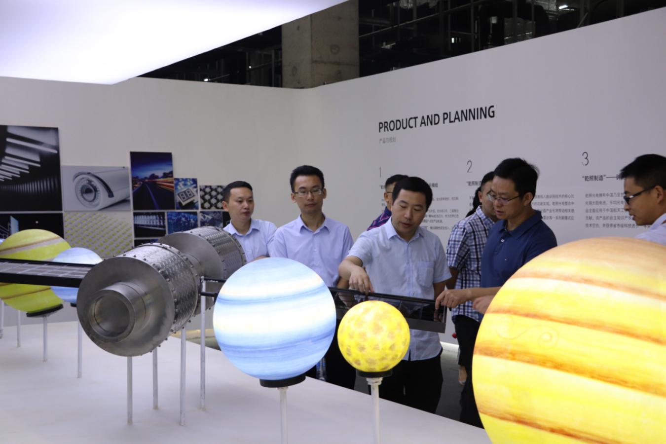 考察組一行來到公司展廳,工作人員介紹了公司的企業(yè)文化、項(xiàng)目的建設(shè)規(guī)劃布局以及LED芯片的應(yīng)用領(lǐng)域。劉兆就公司的產(chǎn)品特點(diǎn),特別是自主研發(fā)的三大高新技術(shù)產(chǎn)品做了專業(yè)的講解。朱局長針對公司在航空航天領(lǐng)域應(yīng)用的砷化鎵太陽能電池產(chǎn)品的技術(shù)應(yīng)用進(jìn)行了探討與交流。