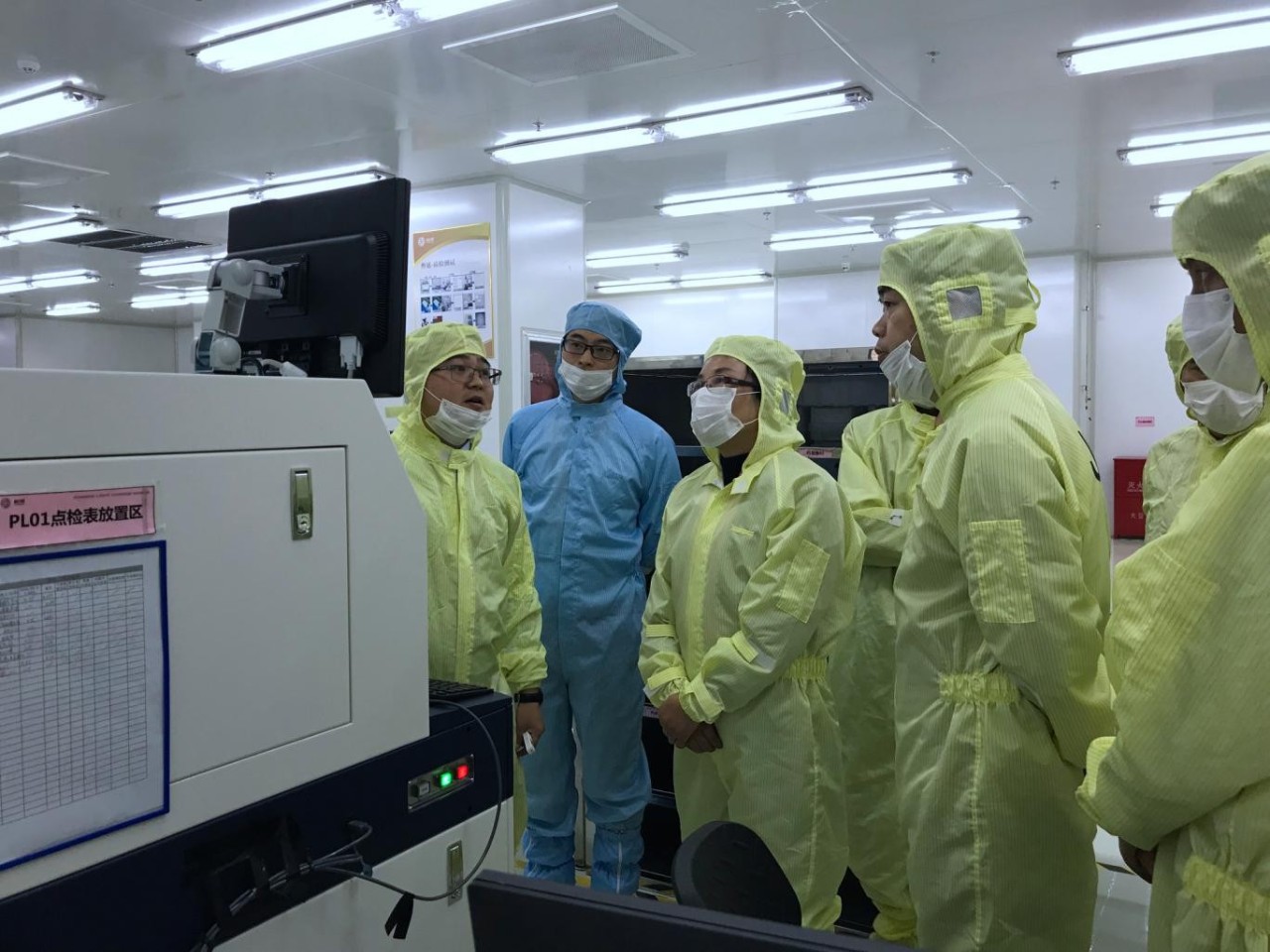 在展廳,李局長認真聽取了公司企業(yè)文化、項目建設(shè)規(guī)劃、產(chǎn)品技術(shù)優(yōu)勢及應(yīng)用領(lǐng)域的介紹。隨后,調(diào)研組參觀了外延生產(chǎn)車間,并詳細了解了外延片的生產(chǎn)制作流程和質(zhì)檢工作程序。李局長對江西乾照光電的迅速發(fā)展、現(xiàn)代化生產(chǎn)和智能化工序表示了高度的贊揚。