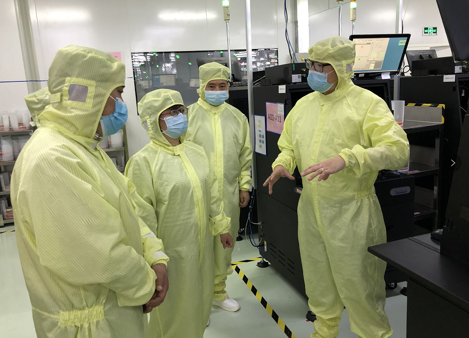 在公司展廳,陳文戎向調研組一行介紹了公司發展歷程、生產經營狀況以及產品技術優勢和應用領域。在車間,調研組一行觀摩了外延片生產相關工藝流程及芯片點測、分選流程,對公司的現代化智能生產技術和設備的運作程序給予了充分肯定。