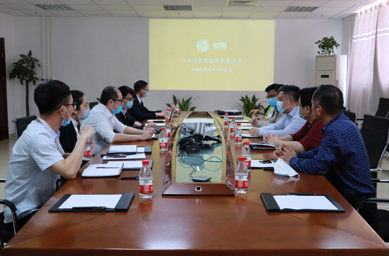 隨后,調(diào)研組一行與江西乾照光電主要負(fù)責(zé)人舉行了座談,公司負(fù)責(zé)人就江西乾照光電基本情況和管理創(chuàng)新系統(tǒng)進(jìn)行了詳細(xì)匯報及演示。余處長首先高度肯定了江西乾照驚人的建設(shè)速度及完善的信息化管理系統(tǒng)所取得的成效,并對公司推行的個性化網(wǎng)絡(luò)在線學(xué)習(xí)平臺表示贊賞,勉勵企業(yè)繼續(xù)加大學(xué)習(xí)激勵力度。同時他希望我司進(jìn)一步推進(jìn)信息化與數(shù)字化結(jié)合的管理創(chuàng)新步伐,加大管理創(chuàng)新工作的深化與提升,并對管理實(shí)踐成果進(jìn)行總結(jié)和推廣,力爭成為同行乃至上下游企業(yè)學(xué)習(xí)效仿的管理創(chuàng)新示范基地。